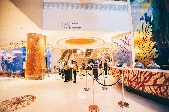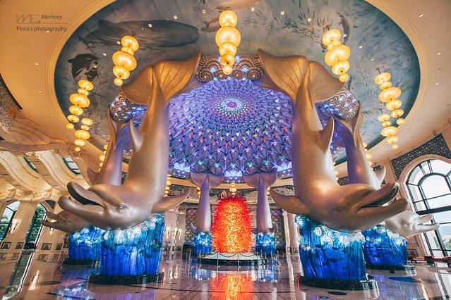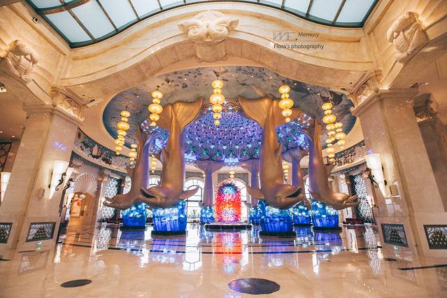这是酒店超美的大堂。为了契合珠海长隆的海洋主题,大堂的主要装饰景观就是数条硕大美丽的海豚。