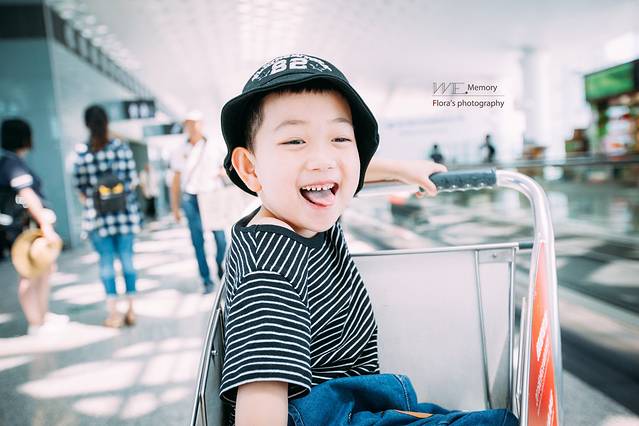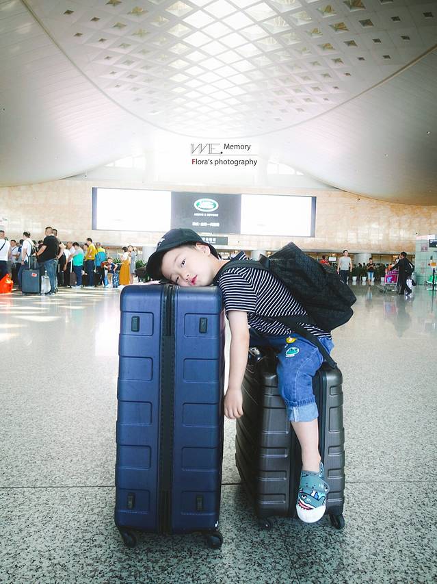 看看坐在行李箱上对我挤眼睛的小家伙,
