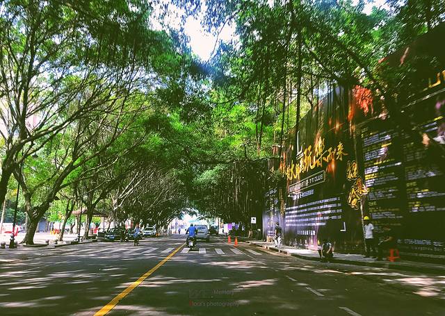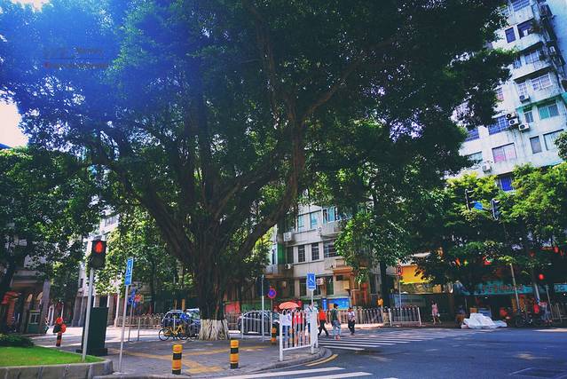 太喜欢岭南的夏天,从酒店散步去喝早茶。这里的街道,两旁大大的榕树枝条低垂环抱出一片片绿荫。一路走一路拍,怎么都看不够的绿,藏在榕树枝条的缝隙里,藏在脚下的石板路里。