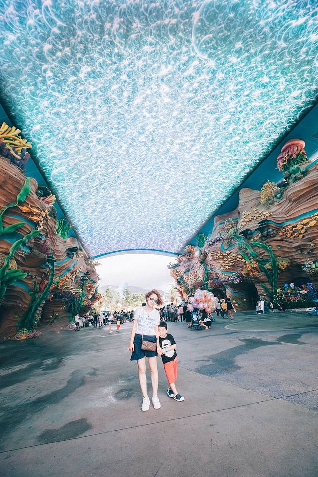 以带孩子家庭为例,基本十五分钟脚程。沿路会经过另外两家酒店,酒店与酒店之间都设有回廊,所以哪怕步行到园区,也不怕淋雨或暴晒。设计还是很体贴的。