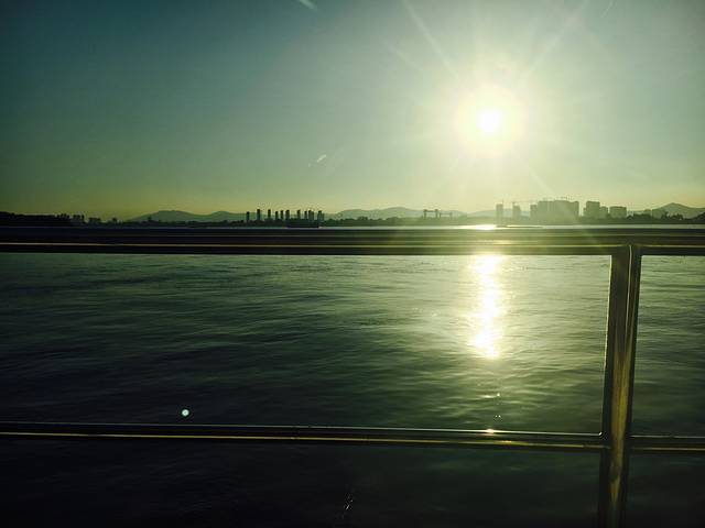 等待轮渡时身侧映过来的灼目日光