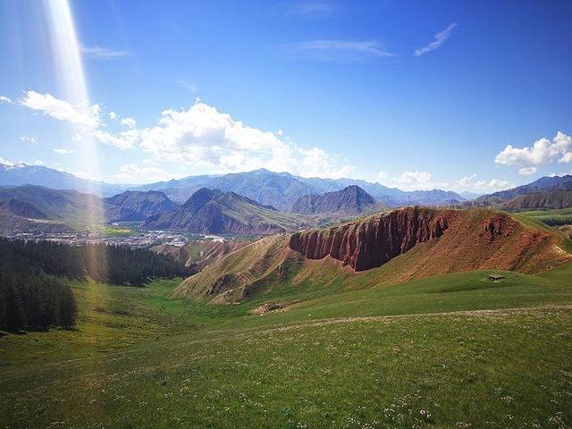 第二站的祁连草原,我们师傅没有停,因为一路上公路两边都是大草原,所以就在车里边走边看了,当然没能亲自躺一躺大草原,也是个小小的遗憾。