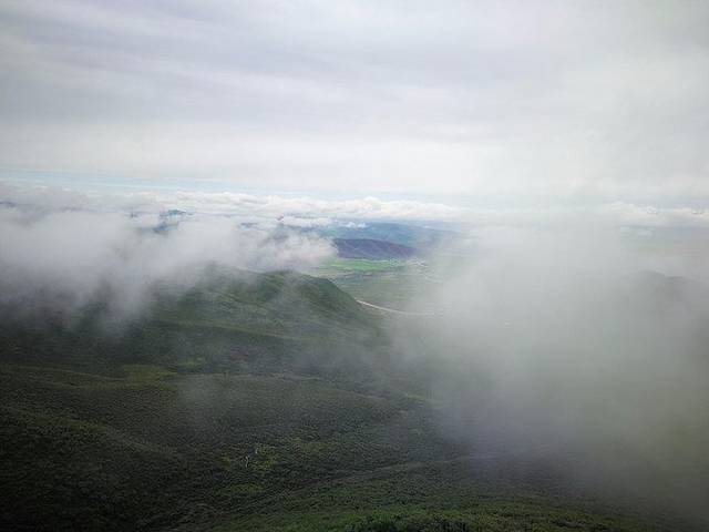 从门源出来之后就是此段路程的最后一站达板山,因为下过雨的关系,所以是雾气缭绕,也让人真正体会到了什么是人间仙境!