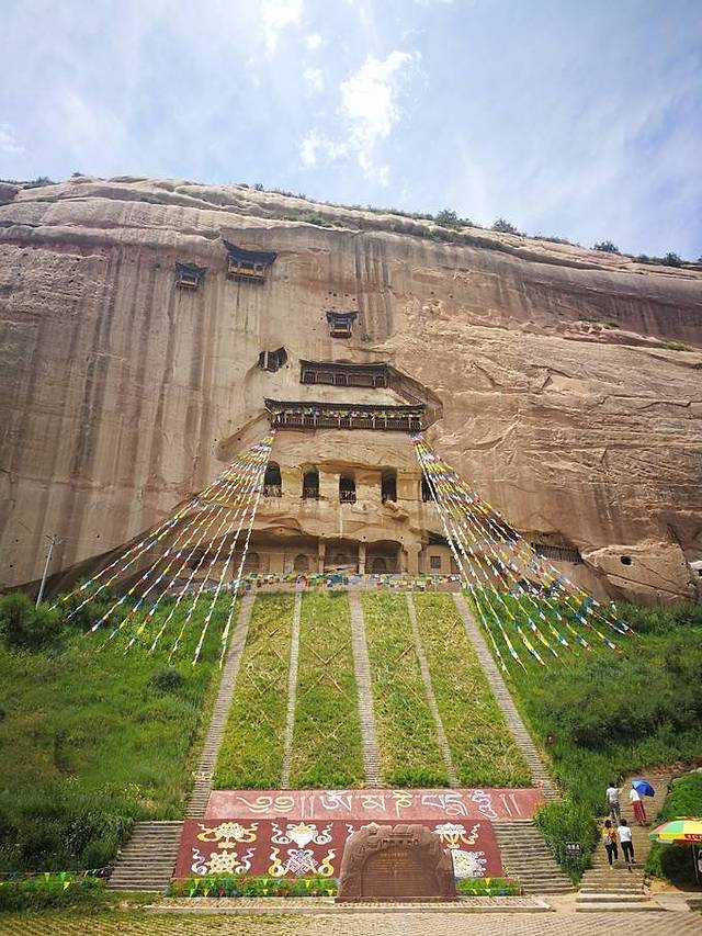 马蹄寺的所有建筑都是隐藏在山体中,是目前国内现存最大的藏传佛殿的石窟之一,同样进去不让拍照,我蹭了旁边游客的讲解大致了解了一下,这个寺庙一共有七层,而且上下只有一个通道,我只进去了三层,因为再往上那坡度大概能有80——90°,而且楼梯宽度只允许一个人通过,所以感觉蛮危险的。