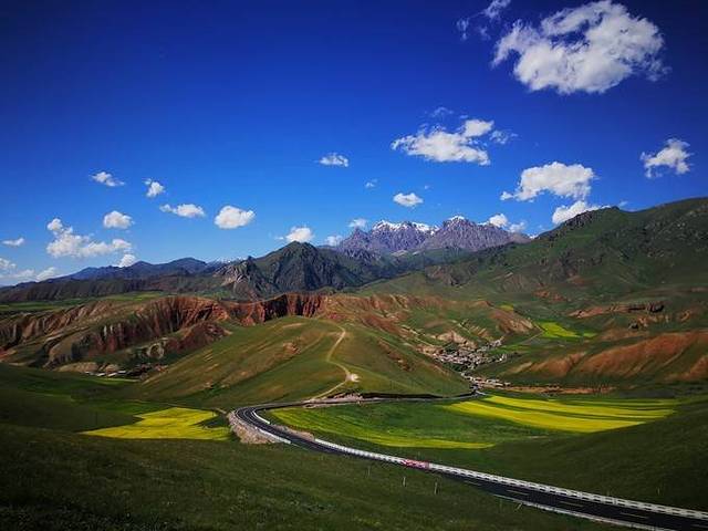 环湖公路是从黑马河,鸟岛出来去下一个景点要走的超美的公路,两侧是一马平川的草原,六七月份有成片成片的油菜花,赶上个大晴天,就俩字——完美!