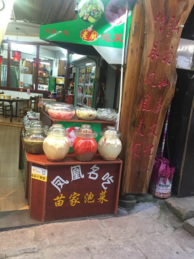 这家饭店是老板推荐的,网评也很火,有凤凰最有特色的血粑鸭和酸汤鱼,美团购3人餐78元,我们选的是血粑鸭套餐,大众点评好评还赠送果酒一杯,服务态度很好,味道也不错,有很多种果酒可供选择,度数不高,6-8元/杯。
