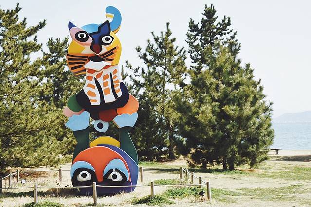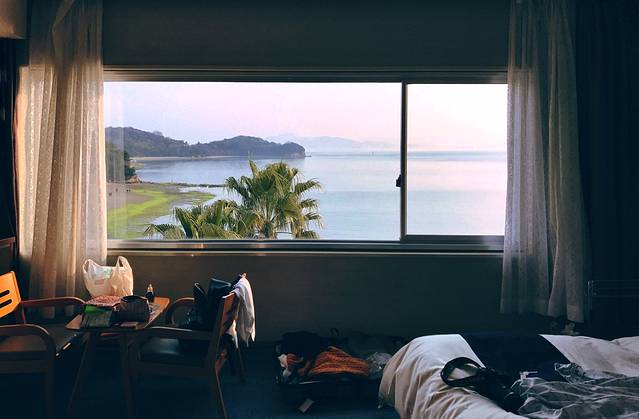带着几乎崩溃的心情,我在暴雨里先去找了售票厅,想尽早买去直岛的下一张票。售票处很小很小,也没有coin locker,里面只有两个当地的岛民,完全说不来英文,我用手艰难比划了我的目的“买去直岛的票”以及“有没有地方暂放行李”。一番鸡同鸭叫后他们终于get了,并且非常热情的示意我的箱子可以放在小小的售票厅,其中一人好表示可以开车送我去丰岛美术馆。