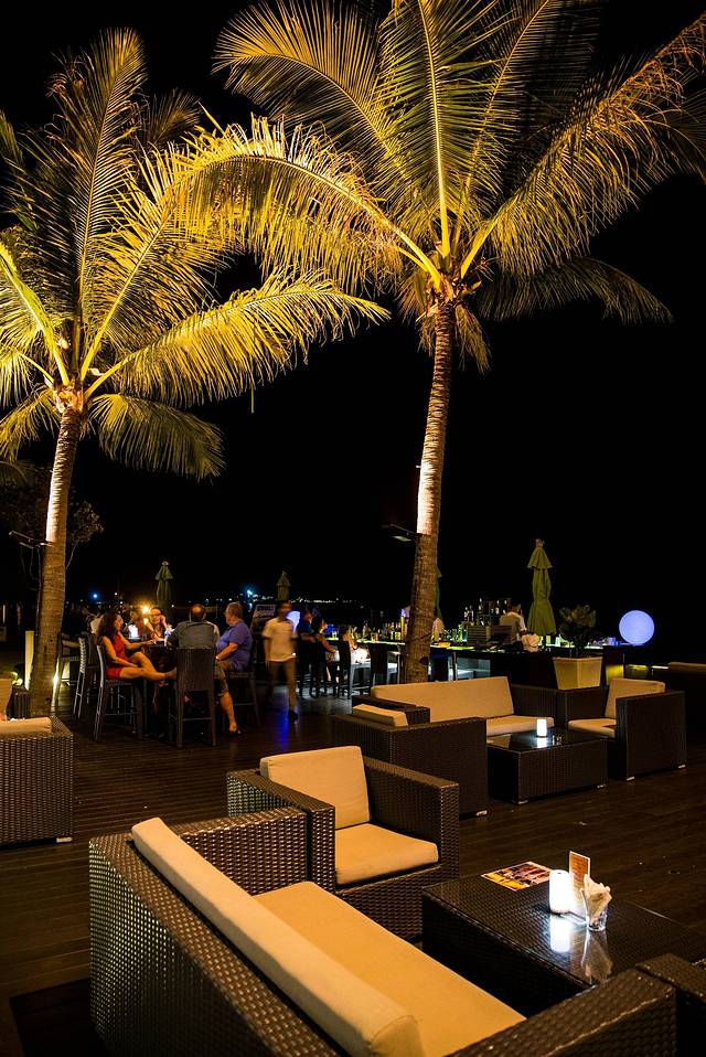 室外酒吧就在大堂的后边,坐在这里吹着海风,叫上三五好友,喝上一杯,舒服至极
