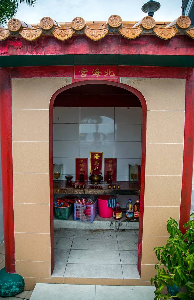 路边偶遇一神龛,定睛一瞧,原来是北海宫,可能就是北海龙宫吧,但是沙巴应该是南海啊…… 里面供奉的是海马大仙……