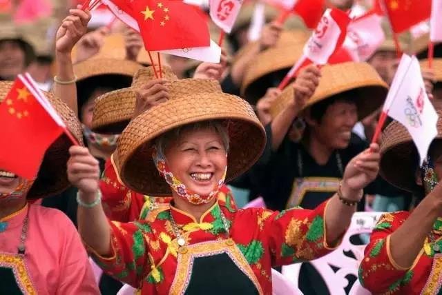 每个人都穿着花衣服,顶着一顶特殊的渔家帽子