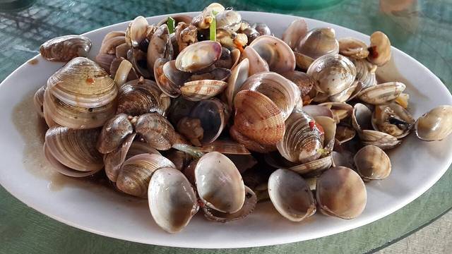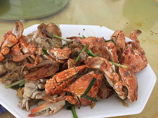 我们买了几只大螃蟹,一斤虾,一斤贝壳还有两斤濑尿虾