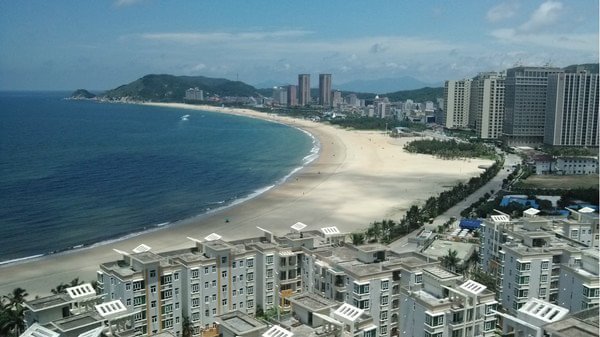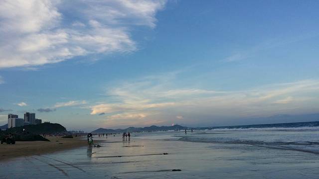 这里地处南亚热带,全年日照时间长,年平均气温22.8℃,水温23.5℃,降雨量1816毫米,年晴天数310天,四季气侯宜人,素以阳光灿烂明媚,沙质均匀松软,海水清澈纯净,空气清新纯洁而著称,各类质素均达国际一类(级)标准,又因 沙滩宽阔平坦,海浪柔软适中,无鲨鱼出没而成为名扬海内外的天然海水浴场。