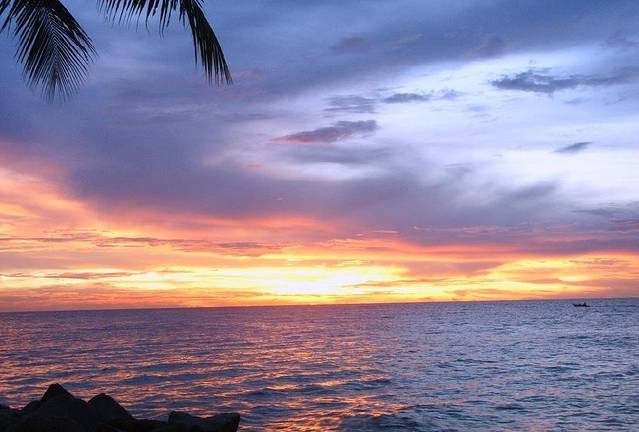 大角湾风景名胜区位于广东阳江市 海陵岛西南端,三面群峰拱护,面向浩瀚南海,沙滩长2.5公里,宽100米,因状似牛角,故名“ 大角湾”。
