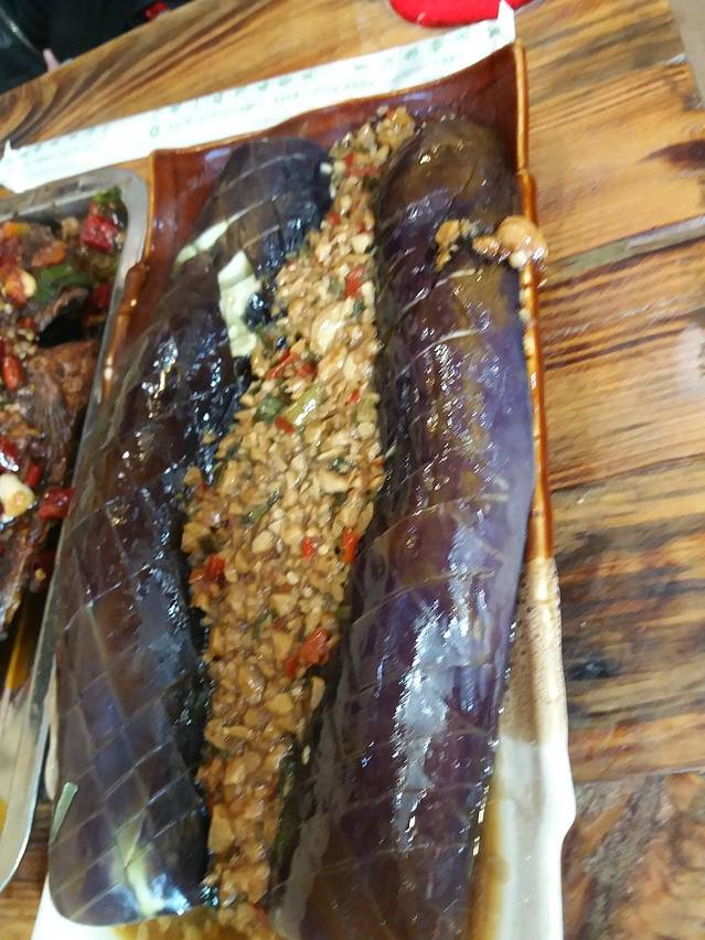 什么茄子,好像是蒸熟的,然后炒的蒜料,放在上面,吃着一般。