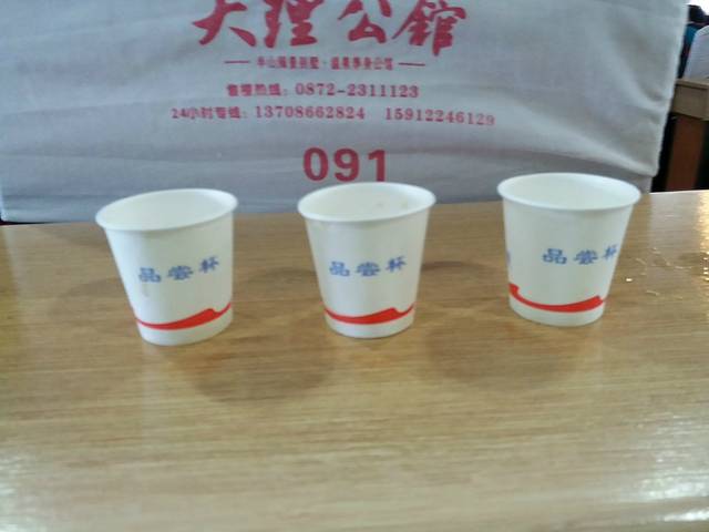 一次性纸杯,品尝三道茶。
