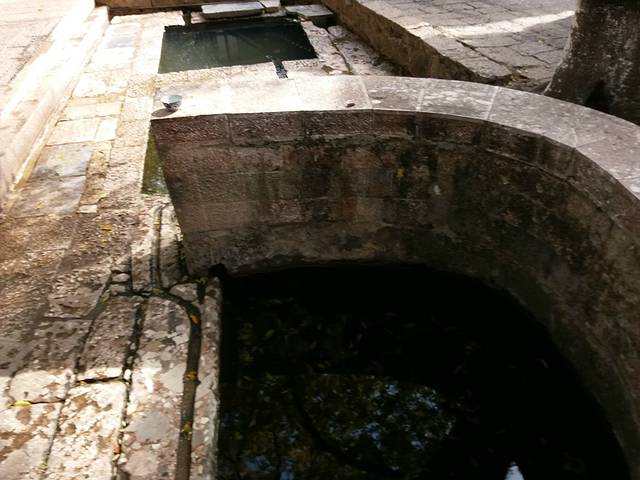 古镇的水井,刚开始以为就是摆设,但后来真看到有人在里面洗菜,为什么有三个池呢?离我最近的是第一道池水,用来饮用的,没看上面有只碗嘛。中间那个池是洗吃的东西用的。最远的那个池是洗手洗衣服的。