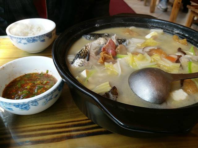 换好了房间打算下楼去吃点本地特色的小菜,客栈的小家伙出门就跟着我们,赶它也不回去,就2人1狗一起用了一餐。依然在大众点评上查到,价格适中,口味鲜香,吃得我们很满足,吃完了,小家伙也满足的自己回客栈去了。