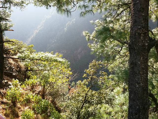 因为是淡季,人很少,很快就坐上了传说中的索道,要说这个索道坐起来被山风吹荡的时候还是比较刺激的。因为山上情况,最终的一段索道已经封闭,只能在观景台下来,走一段山路,在山上走路特别锻炼体魄,但同时山间的景色也特别美,只有付出才会回报在这里诠释得很清楚。