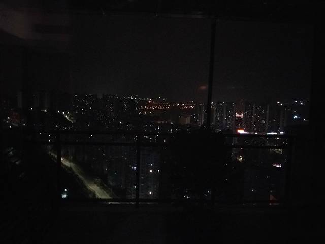 晚上酒店的房间阳台外景。
