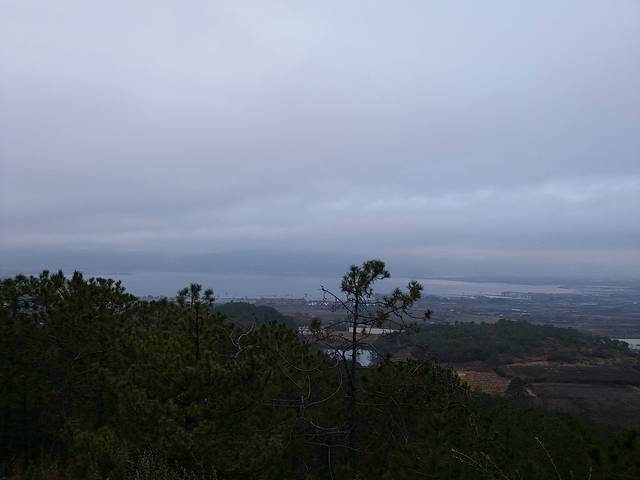 山上的风景,远处的就是拉市海了,上山时的天气不太好,还飘了点雪花。