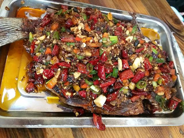 纳西烤鱼,特别香酥,不怎么辣,口味及好。