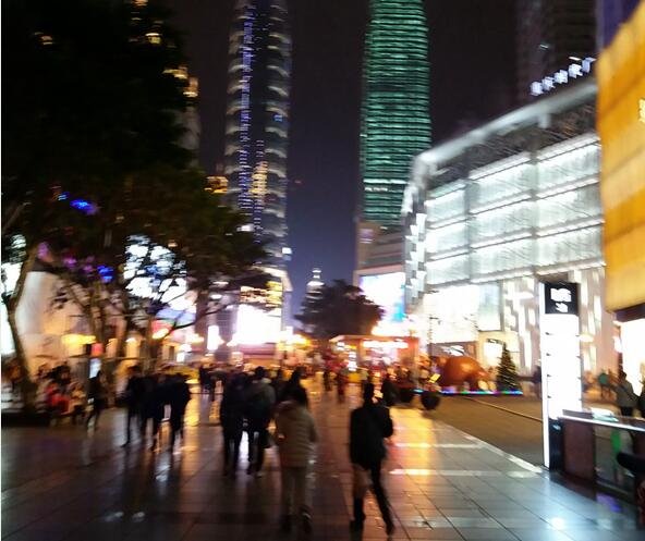 解放碑附近商圈晚上街景,拍得有点虚,边走边拍的。