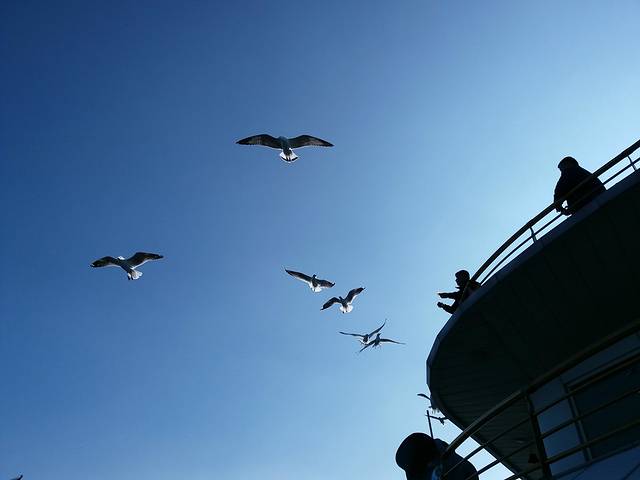 游船上空的海鸥