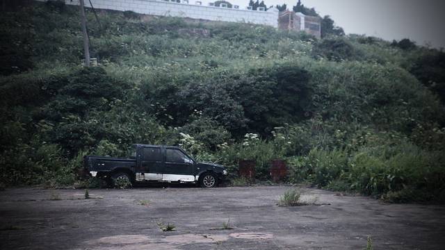 一辆废弃的皮卡,静静地趴在空地上,你是在等待擎天柱大哥的召唤吗?