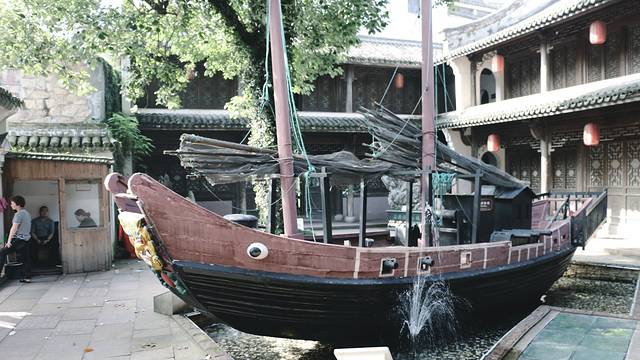 这处带庭院的住宅是介绍石浦渔村历史的。这艘貌似是水师的炮船。