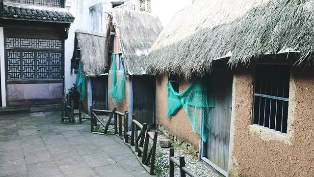 古时候的渔民小区······茅草顶,土砌墙,木板门,粗渔网,狠狠的原生态······