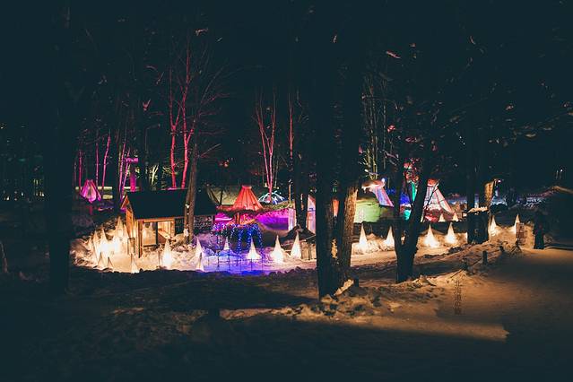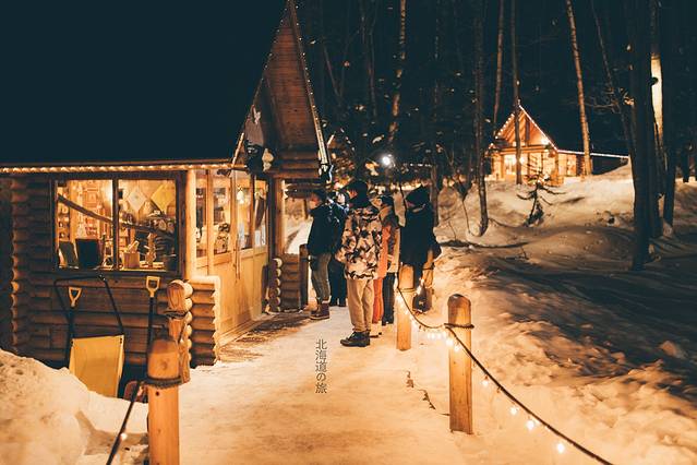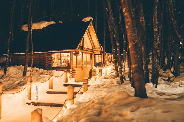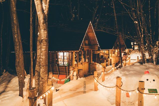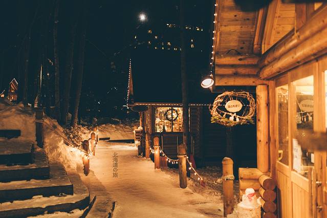 就像之前说的,明明看着在4号车站等车,可是车却进了一号站台,这可是最遥远的距离,不过巴士站的站台都在一条线上,奔过去还是比较容易的,上车把票给司机叔叔看了,确认过后才敢上车,车上很多都是带了装备滑雪的各国友人。到了新富良野王子酒店,就能看到此时灯光闪烁的精灵露台了,真的很有童话王国的感觉