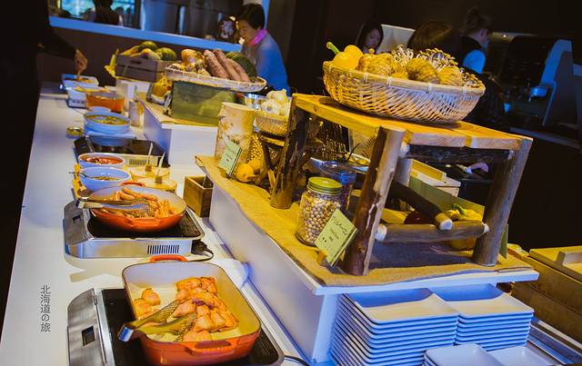 下图的红棕色房子就是进入爱斯冰城和水の教堂的入口,也是一个餐厅,晚上的螃蟹自助餐看起来很不错,可惜当时为了等7点水の教堂的开放,吃货毅然决然地放弃了美食的诱惑,早晨可以选择在你喜欢的餐厅用餐,之前就提过,大概有四五个不同风格的餐厅可以选择,昨晚的遗憾今天来弥补,所以我们决定在这里用早餐。