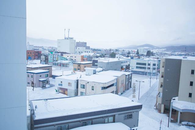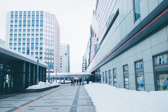 札幌站还是比较大的,提前查好酒店是从哪个出口出去很有必要。对北海道的第一印象,没有遇见大雪,也没太阳,干净的道路没有潮湿的感觉,积雪已经被清理到路的两边,老实说,这第一感觉并不好,和自己城市里大雪过后的早晨没什么异样。这时候尤其期待去计划中第一站的朝里走走,一边郁闷着一边赶紧寻找酒店。