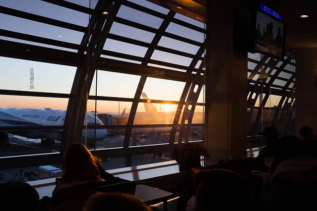 静静等待羽田飞往新千岁的航班,这时正是日出时分,窗外的一切宁静而美好。一个小时过后终于到达了梦想之地-------北海道。