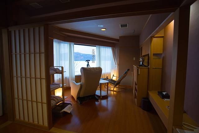 房间很舒适,这个设计真心不错,大大的客厅和另一边的床铺都面对着大窗户,我们住的比较高,视野很开阔,2196rmb一晚在日本说起来是比较划算的~