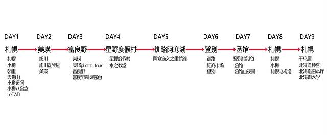 我的行程规划的景点都是比较常规的,除了最远的网走没去,其他地方在9天内玩下来,也已经非常圆满了,总的说起来虽然有一些些赶,但是很充实,参考性还是比较强的,比起之前的大阪东京暴走,我觉得这个行程算的上比较舒适