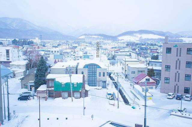 富良野站没有电梯,只有楼梯,这个打击大了点,两个大箱子,一步一挪的运上去,穿过天桥再运下来……好在酒店出站几步路就到了