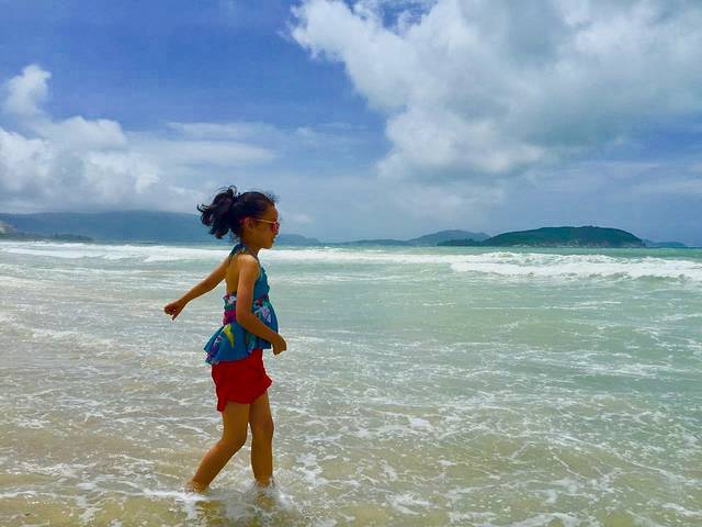 吃完饭,小天使就要去海边