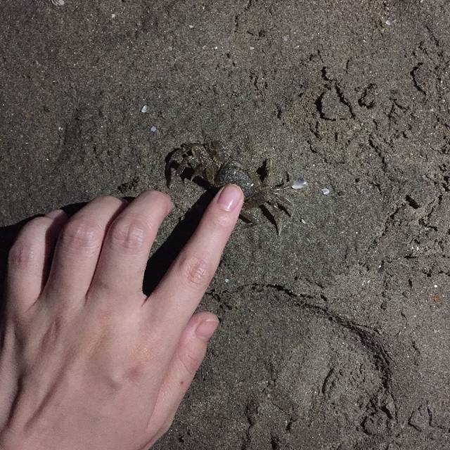 小螃蟹喜欢躲在一个个小洞洞里,一抓一个准,不过后来我们都放生了