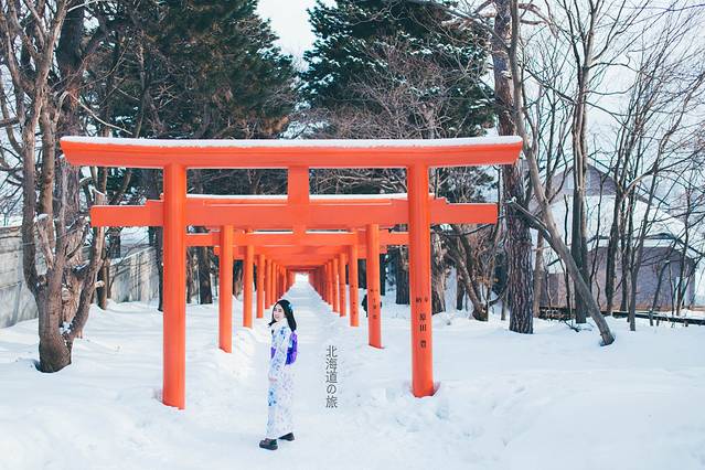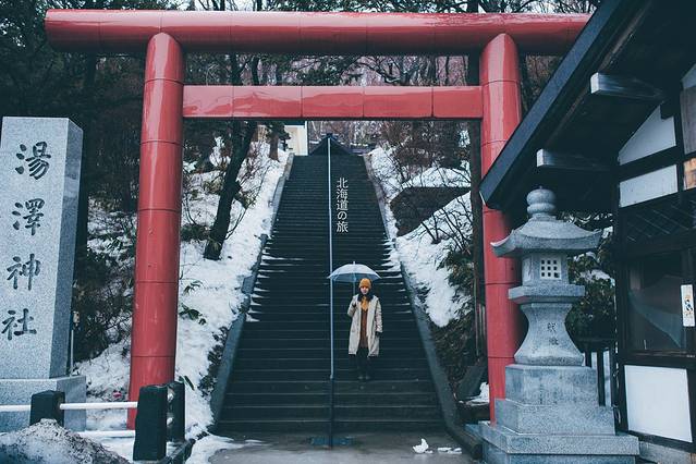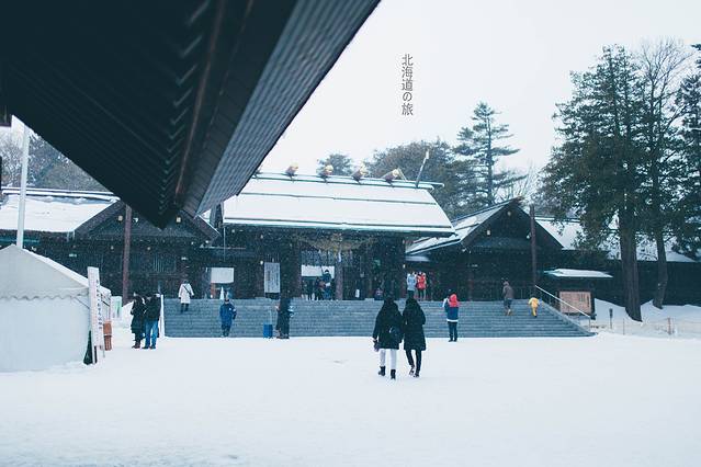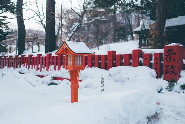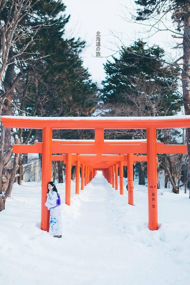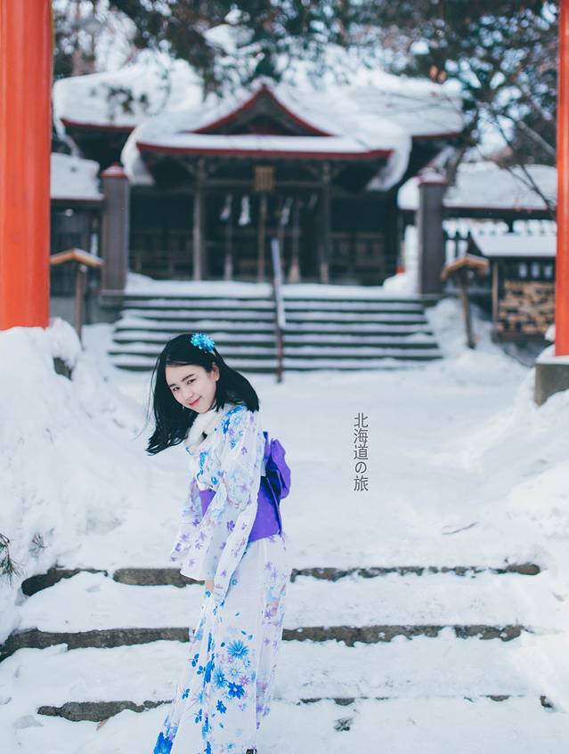 千鸟居本来是有台阶下来的,可是雪太厚台阶已经看不清了,这时候走下去肯定不摔死才怪,还好我机智,我把衣服一裹,像坐滑梯一样滑了下去!