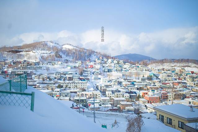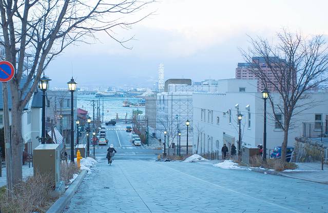 沿着这条路一直往上走就是船见坂,沿着船见坂上去到顶转弯可以看到一个小的观景平台,俯瞰小樽全景,视野很好,我也是做攻略时看到别人游记写的,所以很想去