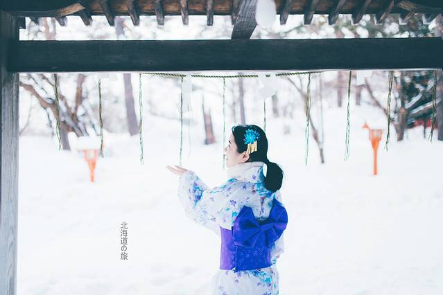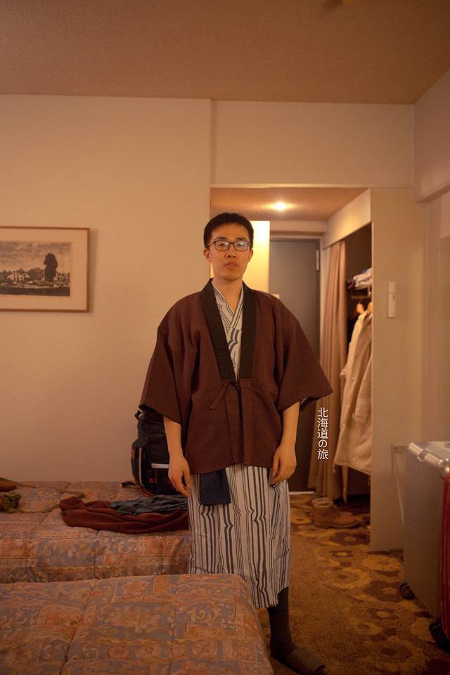 出发的时候已经把和服穿在我的外套里面了,到了一脱,哇我~
