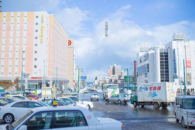 很快就到札幌站,这次出站是不同的方向,然后跟着谷歌地图到了酒店,这次这条街更主流一点,一路上好多熟悉的酒店和好吃的餐厅,酒店的位置比第一天的稍微远一些,不过步行过去也很方便