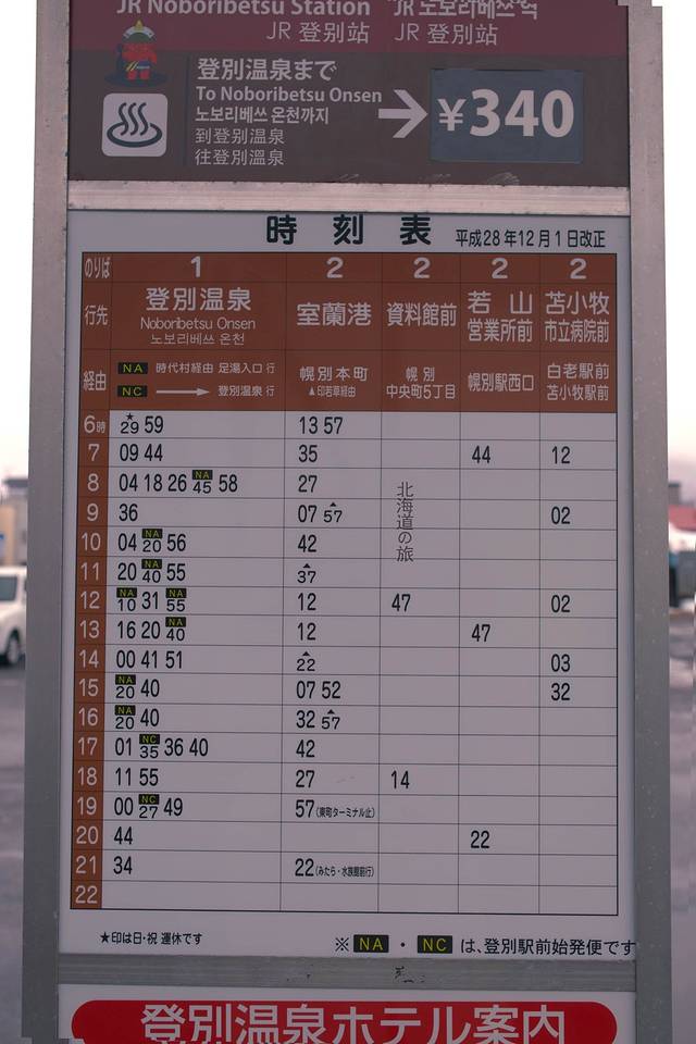 登别站出来后要在门口的巴士站排队,等待去往登别温泉的巴士,到了登别温泉站下车要走一段路,而且是上坡路,才能到达酒店。