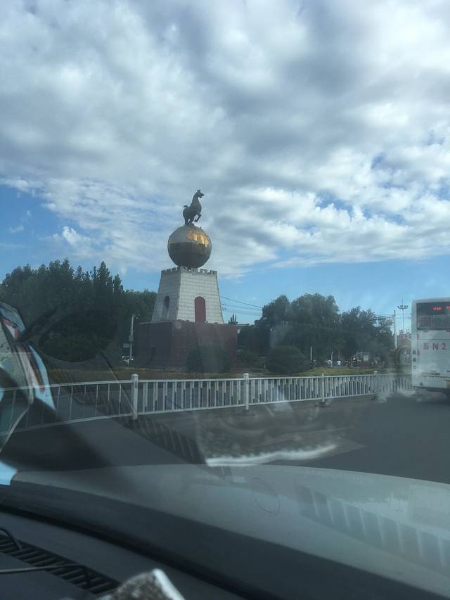 路过三角地的‘马踏飞燕’,照张相,暂别阿克苏。
