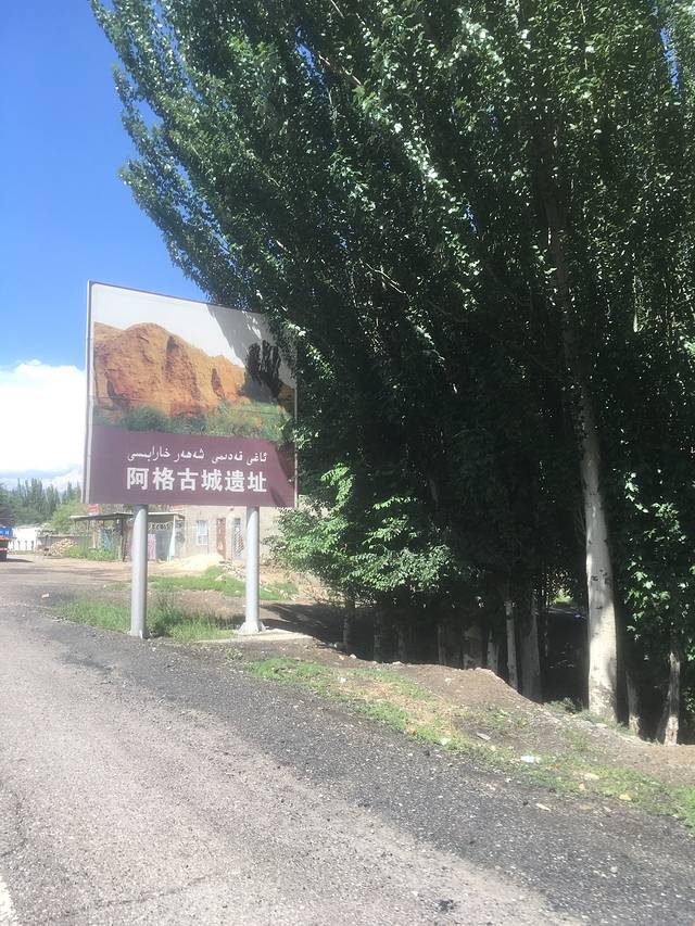 那排杨树下有一排土墙,那是阿格古城遗址