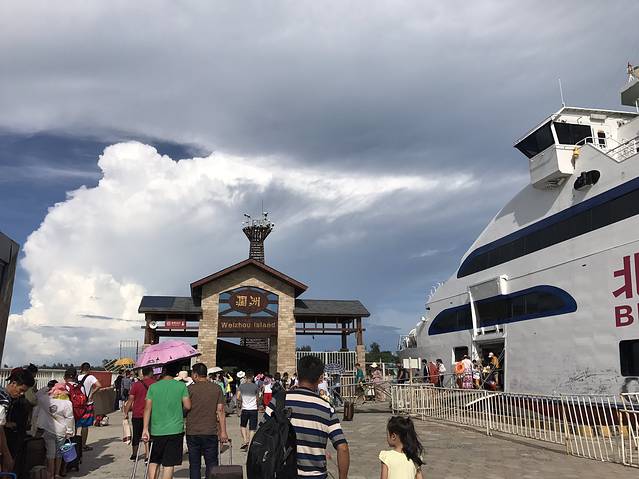 到达北海的第二天6点半起床,收拾东西吃完酒店早饭(包括在住宿里有炒菜,炒饭,炒河粉,粥,牛奶,🥚种类比较多)头一天抱的团4个人赶海580元(包括,体验沙滩车,海上快艇〈坐快艇途中可以打鱼捞到一条鲈鱼属于我们的,包括在费用里,之前我们并不知道〉,抓螃蟹),玩到10多就累死了,旅行社说你想玩到几点都行,但是太晒了,提前打电话让旅行社来接,当然了车接车送是之前谈好的,司机挺好的给我拉到乔南路吃了海鲜和有名的24号糖水店,刚开始觉得不错,后来打包走两杯发现杯底全是糖。吃完饭打车回到酒店取行李去码头嘀嘀打车24元,头一天晚上提前订的船票,必须提前订,我们订的15点20的快船普通仓,成人150,大概1个多小时到达涠洲岛,晕船的人注意还是多花点钱订高级仓吧估计180,还有提前用晕船贴,10元一袋,两贴,提前半个小时用。