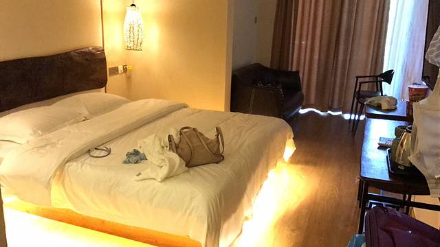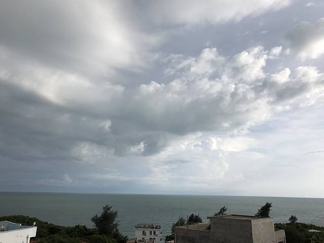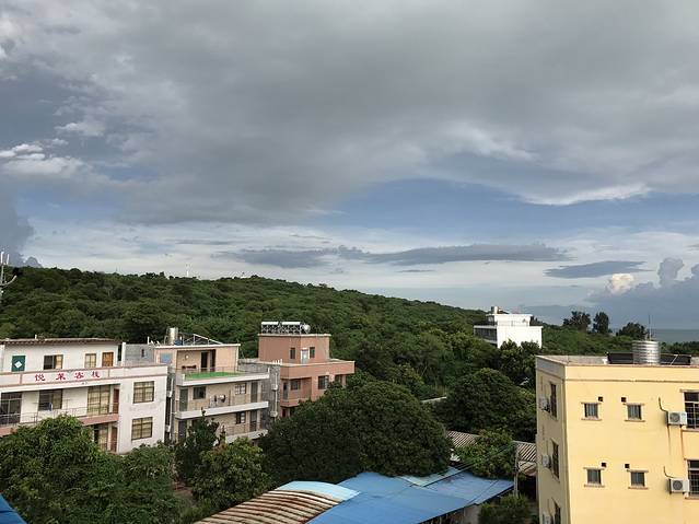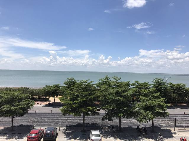 到达岛上后酒店的叔叔来接,大概20分钟左右开到酒店,我们订的海景房,每晚213元大床房,想看海景房的朋友注意了,涠洲岛上的房子都没电梯,想看海景的好好考虑你们的箱子重量,我们住的5层上去都懒得下楼了,吃晚饭的时候别的桌都是海鲜大餐,我们却吃的几个小菜花了180元,吃饭的餐厅就是住宿老板开的素菜20多,荤菜40多,我们正憋着第二天吃大餐呢,吃完饭海边溜达,走路约5分钟就到海边,晚上的海边黑呼呼的,打开手电都惊呆了,全是珊瑚的尸体和一些贝壳,捡了一些好看的回家睡觉,期待着明天的日出