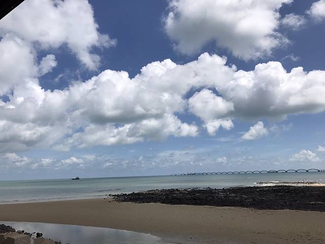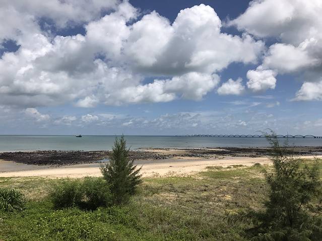 来到涠洲岛的第二天5点多醒了,第一件事看日出,天是亮了,太阳呢?一看怎么在山的后面,看不见啊,经过咨询因为地理位置的关系只适合看日落,6点叫醒儿子去赶海拾贝,我们住的地方挨着滴水丹屏景区,忘了说了上岛要交上岛费,成人120孩子好像60,关于订票可以从网上订哦,订好后直接去景区门口自动换票,岛上不用带太多现金全部可以微信支付宝,我带了3千现金回北京连500都没花到岛上所有景点都包括了,赶海抓了红蟹,虾,回到民宿吃免费早餐(白粥,咸菜,馒头,鸡蛋),能吃饱,吃完后会去冲个澡睡个回笼觉出发进军海鲜市场,打车单程15往返30,买了海鲜有(兰花蟹,龙虾,带子,扇贝,海虾,鱿鱼共花660,好便宜,听说中午买海鲜保证足称,晚上的便宜点但是都难免缺斤短两)又去了海鲜市场斜对面买水果,这里的水果又贵又骗人,能不买还是别买了,可以买点当地的香蕉便宜的3块到5块一把,好点的8块一把,返程吃大餐去喽