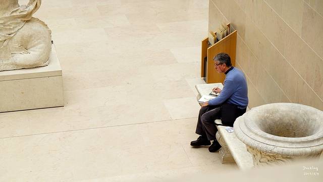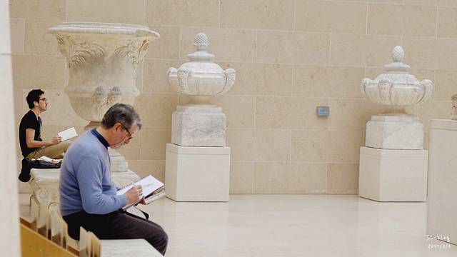 即使周围人潮涌动他们眼里也只有想要临摹的作品..